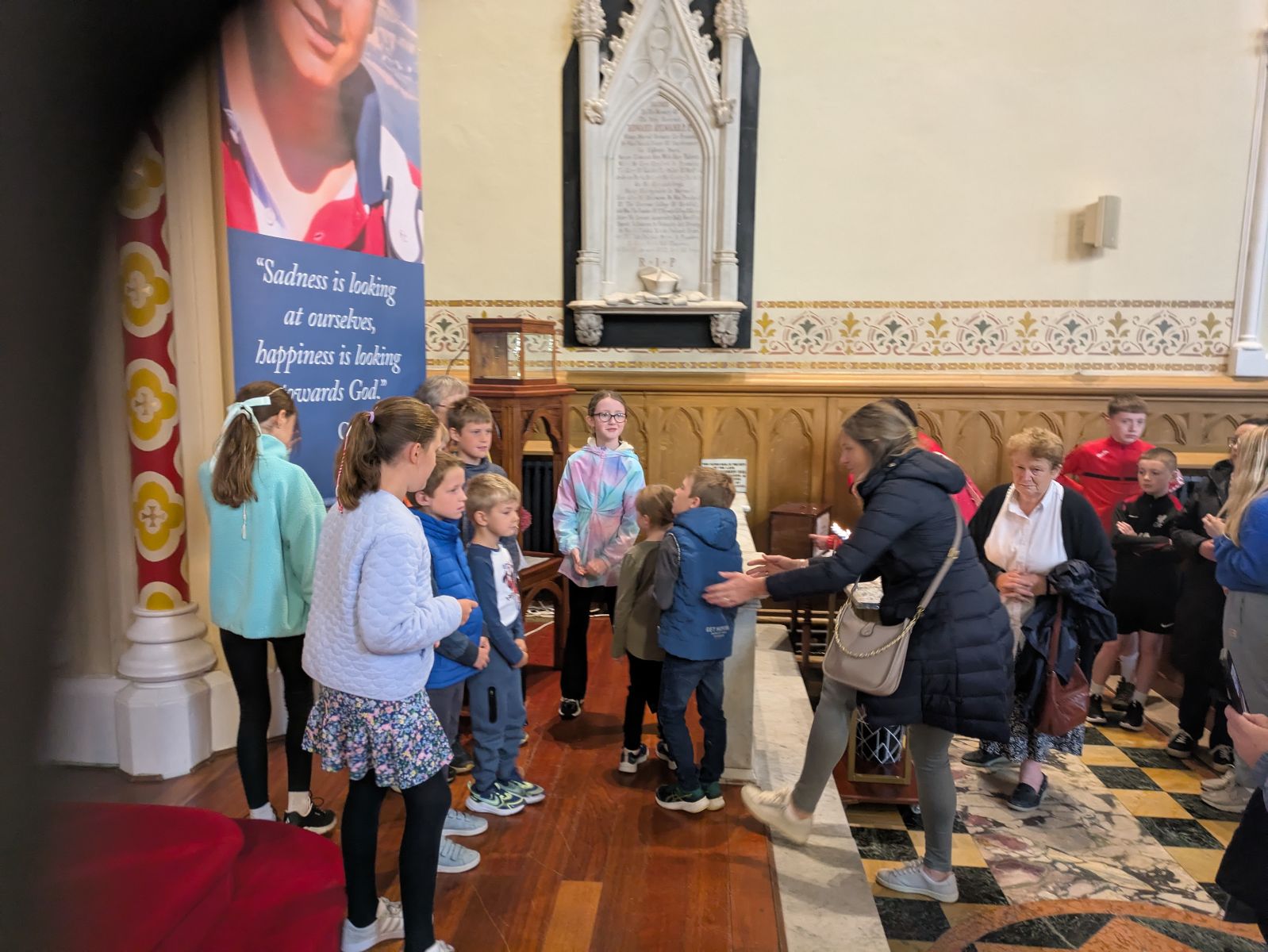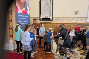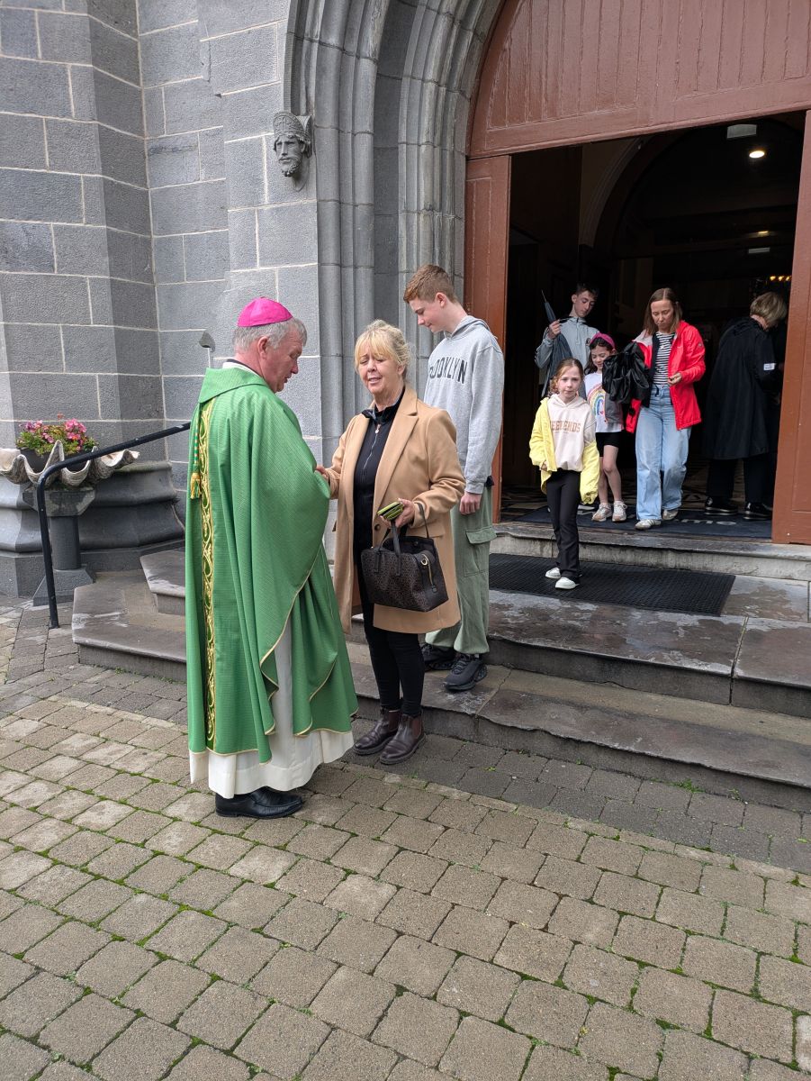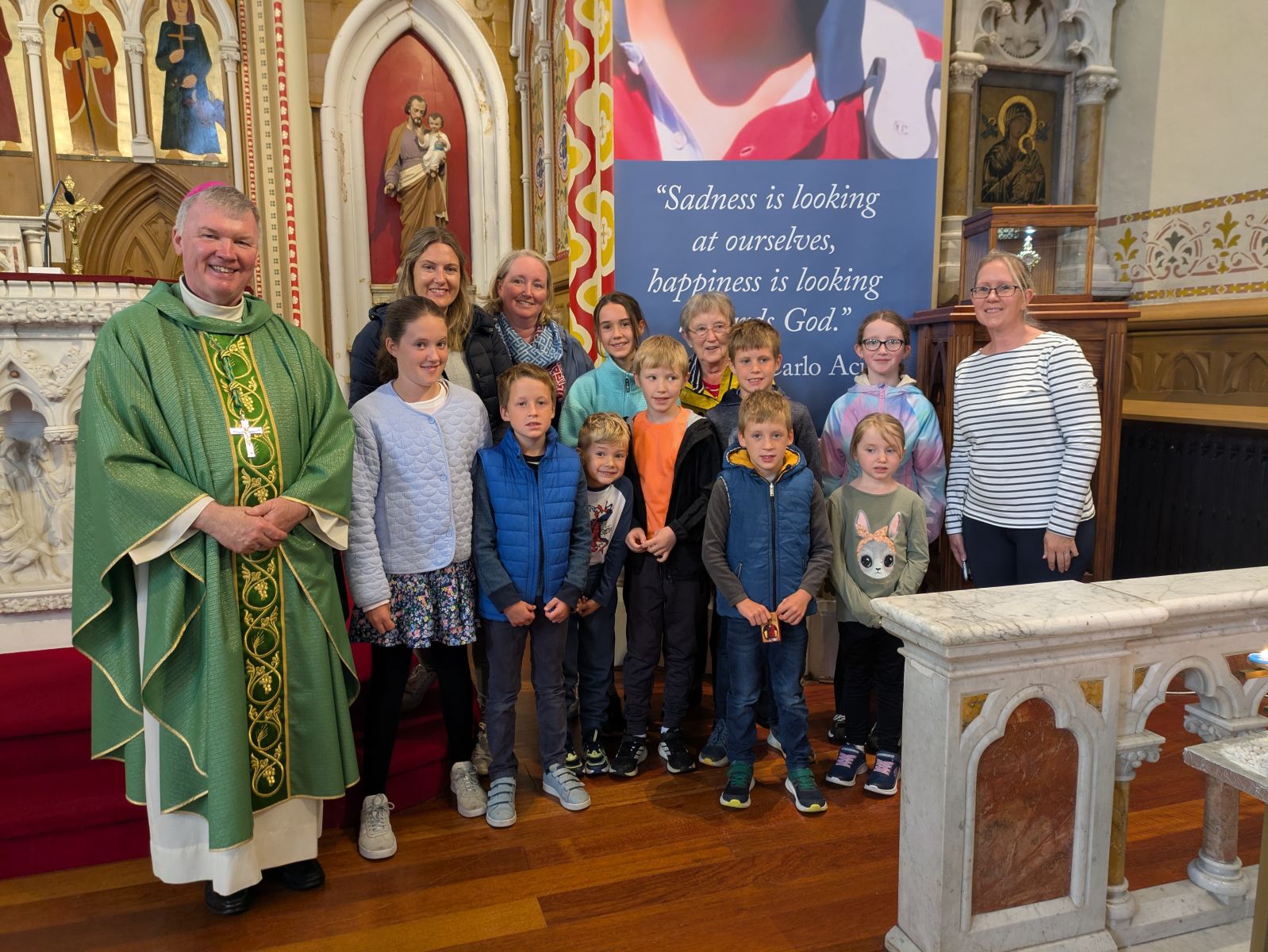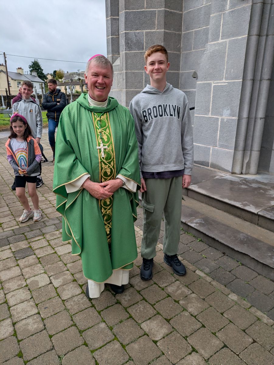 Míle Buíochas to Bishop Coll for his visit last Sunday to celebrate the 11am mass. With the whole church, we the Parish of Castlecomer, rejoiced at the declaration by Pope Leo of the canonisation of Carlo Acutis. What a wonderful celebration in St Peter’s Square in Rome where Carlo’s family participated in the celebration during which Carlo was officially pronounced a saint by the Church. How strange it must have been for them to witness their son and brother elevated to the company of saints – their son and brother who lived in their house, worked on their computer, celebrated birthdays and Christmases: an ordinary teenage boy who lived an ordinary life Thanks to all who participated here in Castlecomer. We now will transfer the relic of St Carlo Acutis to the Community School and will joyfully welcome it back to the Parish Church during school holidays. Speaking in his homily in St Peter’s Square Pope Leo XIV remarked that “Carlo, for his part, encountered Jesus in his family… and then at school, and above all in the sacraments celebrated in the parish community. He grew up naturally integrating prayer, sport, study and charity into his days as a child and young man”. He quoted St Carlo: “In front of the sun, you get a tan. In front of the Eucharist, you become a saint!” And again: “Sadness is looking at yourself; happiness is looking at God. Conversion is nothing more than shifting your gaze from below to above; a simple movement of the eyes is enough.” Referring also to Pier Giorgio Frassati, who was declared a saint with Carlo, Pope Leo XIV said that both young saints are an invitation to all of us, especially young people, not to squander our lives, but to direct them upwards and make them masterpieces.